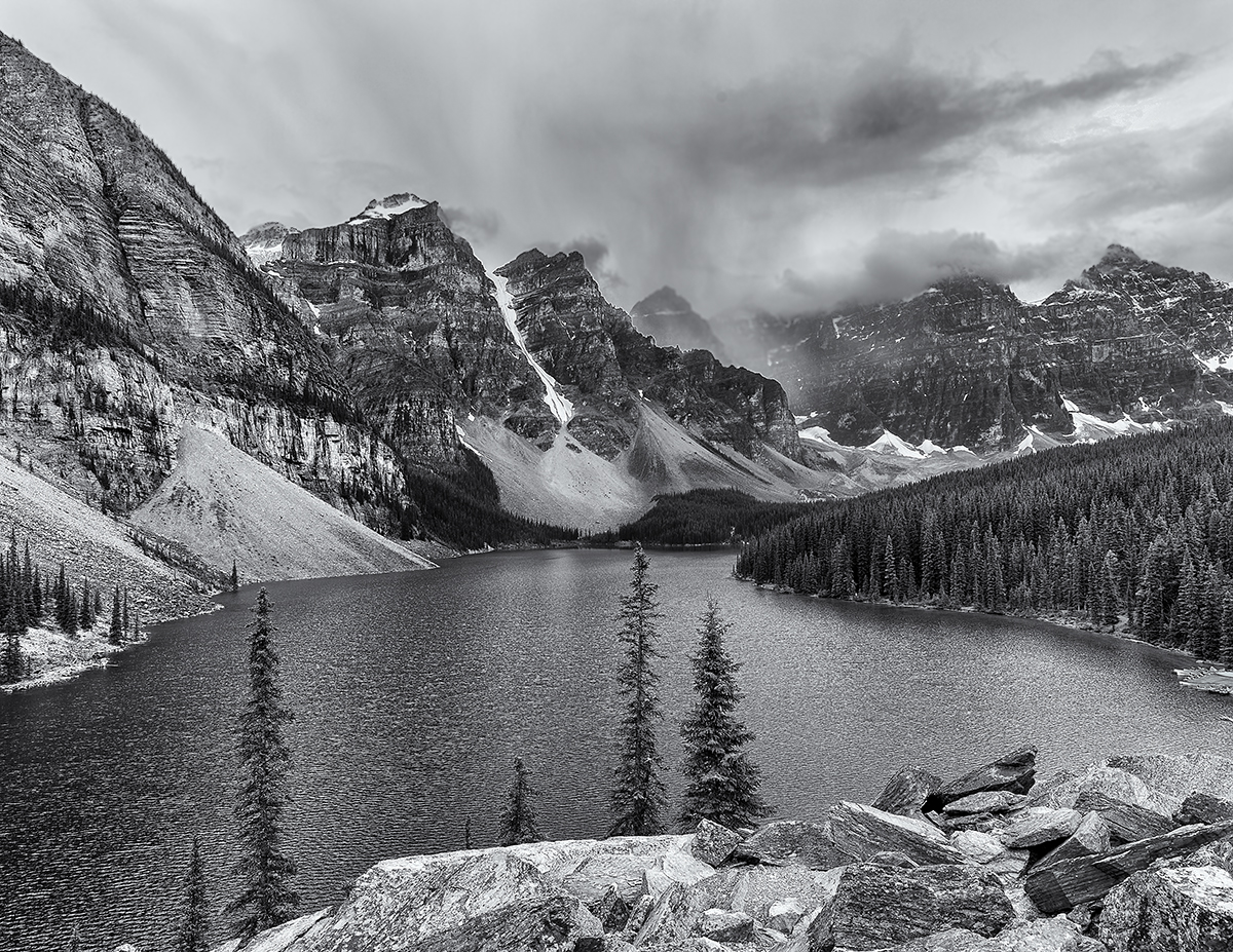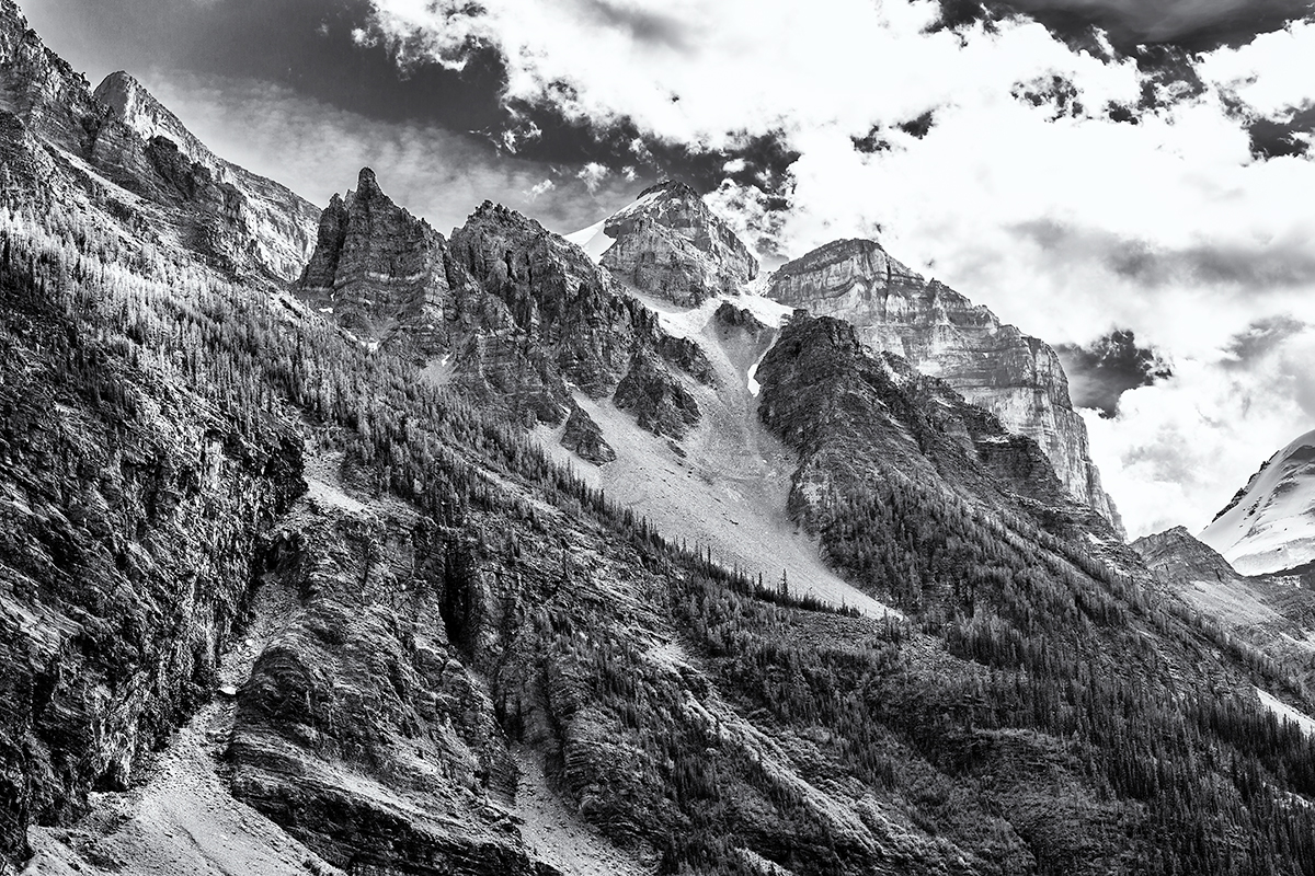 Banff National Park in Canada is home to some of the most stunning vistas on the North American continent. Carved over the millennia by ice, the mountains, lakes, and moraines combine into one of the most scenic places on earth. Although millions of tourists visit the park each year, there are plenty of vistas unspoiled by human activity. When the weather cooperates, the interplay between the mountains and the sky is nothing short of spectacular.